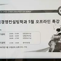 한국열린사이버대학교 창업경영컨설팅학과 5월 특강 (0) | 2017.05.16 |
